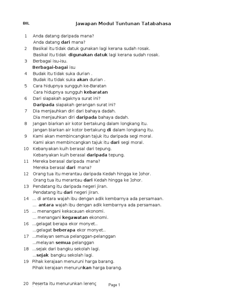 Bm Tatabahasa Pt3 Latihan 01 Education
